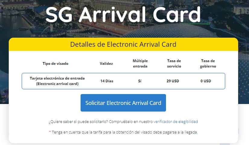 Tasas de solicitud de la SG Arrival Card